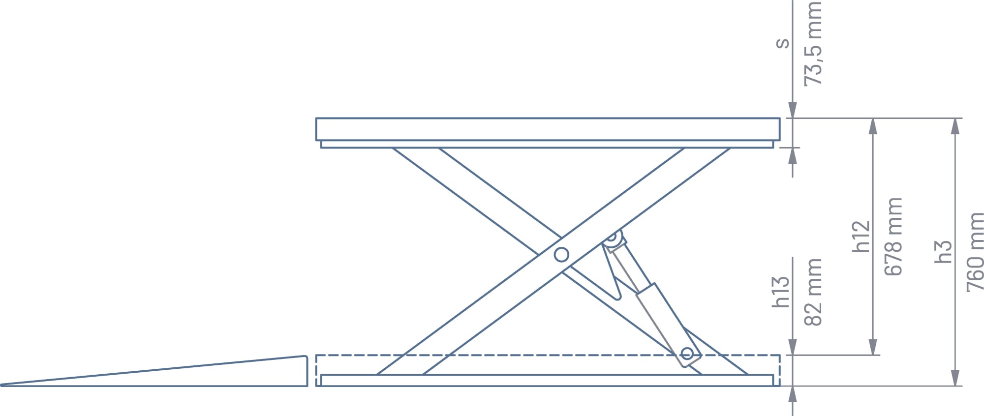 Flacher Scherenhubtisch TABLE-LOW mit Auffahrrampe