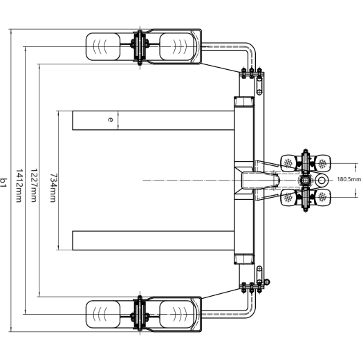 • Flexibility: 860 mm long forks are adjustable in width (228 mm to 734 mm) to accommodate different pallet types, both lengthwise and crosswise
