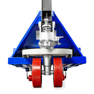 Le transpalette manuel SIX-3500 se distingue par sa structure en acier robuste et résistante à la torsion. Il a été spécialement conçu pour une utilisation quotidienne et intensive dans le commerce et l'industrie. Ses composants à haute résistance garantissent une capacité de charge élevée et une longue durée de vie, idéale pour le transport exigeant de palettes.