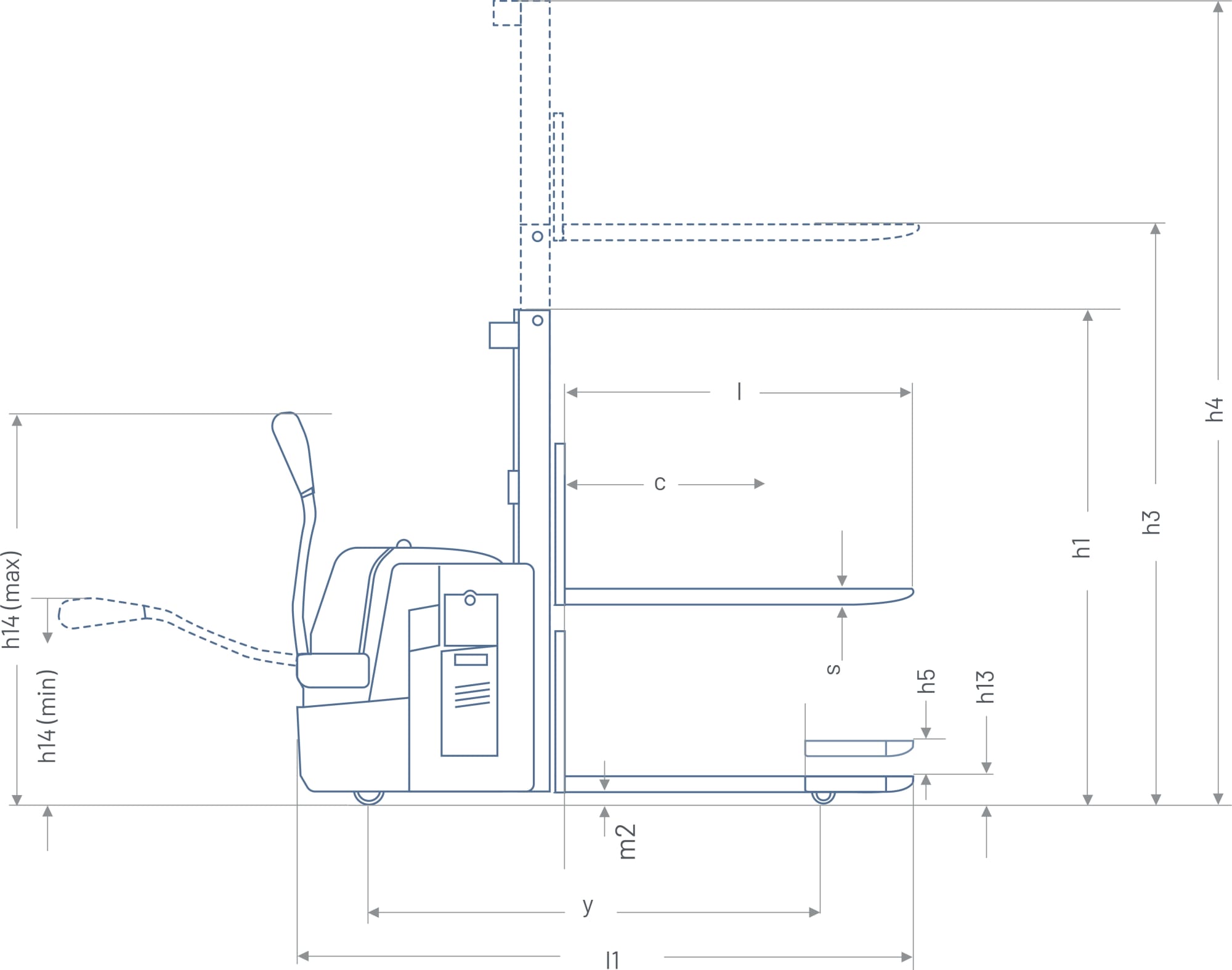 Le MAXX est un gerbeur à timon avec longues fourches, offrant une capacité et une capacité résiduelle supérieures à celles du STRETCH. Il est idéal pour la manipulation efficace de palettes lourdes en usage quotidien.
