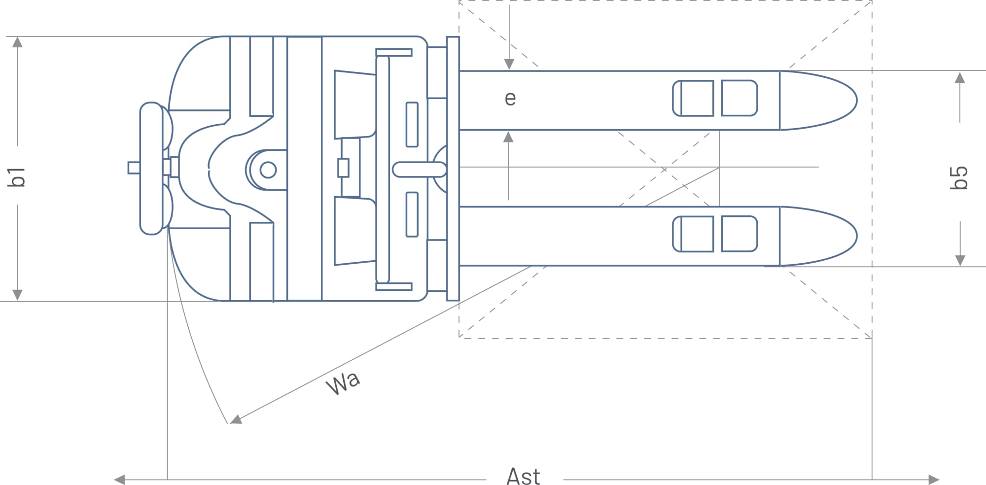 - Longueur des fourches : 1 600 mm (160 cm), parfaite pour transporter 2 palettes Europe (EPAL 1) ou des palettes spéciales